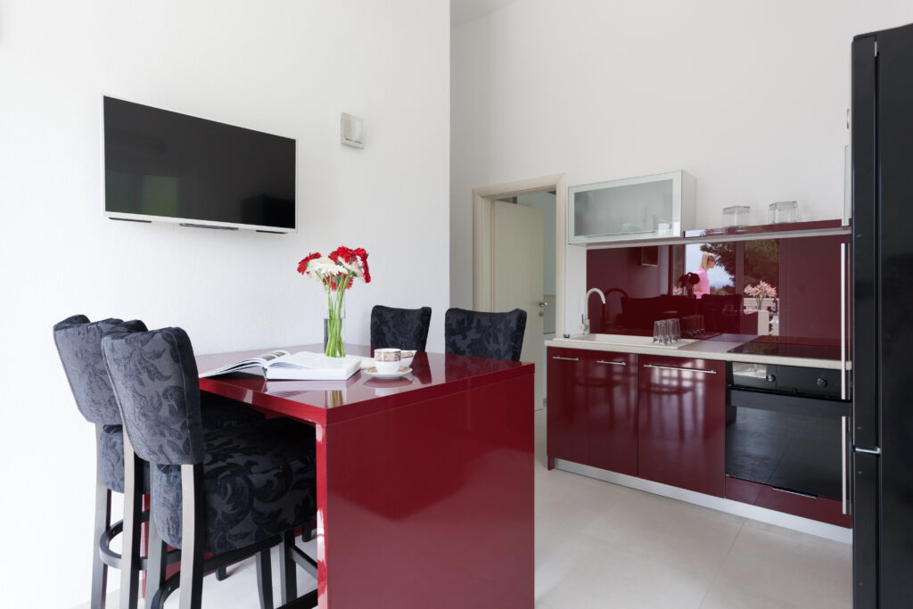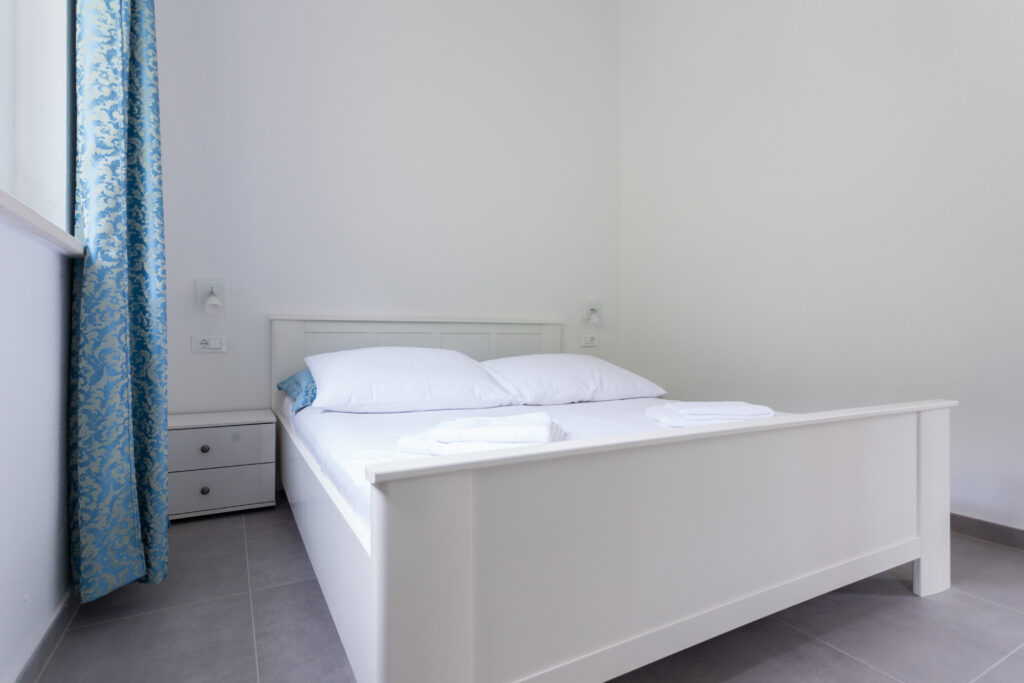 Apartamenty średnie znajdują się na pierwszym piętrze domu. Każdy apartament posiada jedną sypialnię (jedno łóżko podwójne i jedno pojedyncze), w pełni wyposażoną kuchnię z jadalnią, sofę, klimatyzację,
